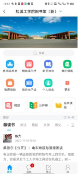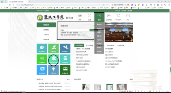 登录后点顶部【首页】右侧的小箭头,下拉选择【盐城工学院图书馆(新)】进入学习通页面。