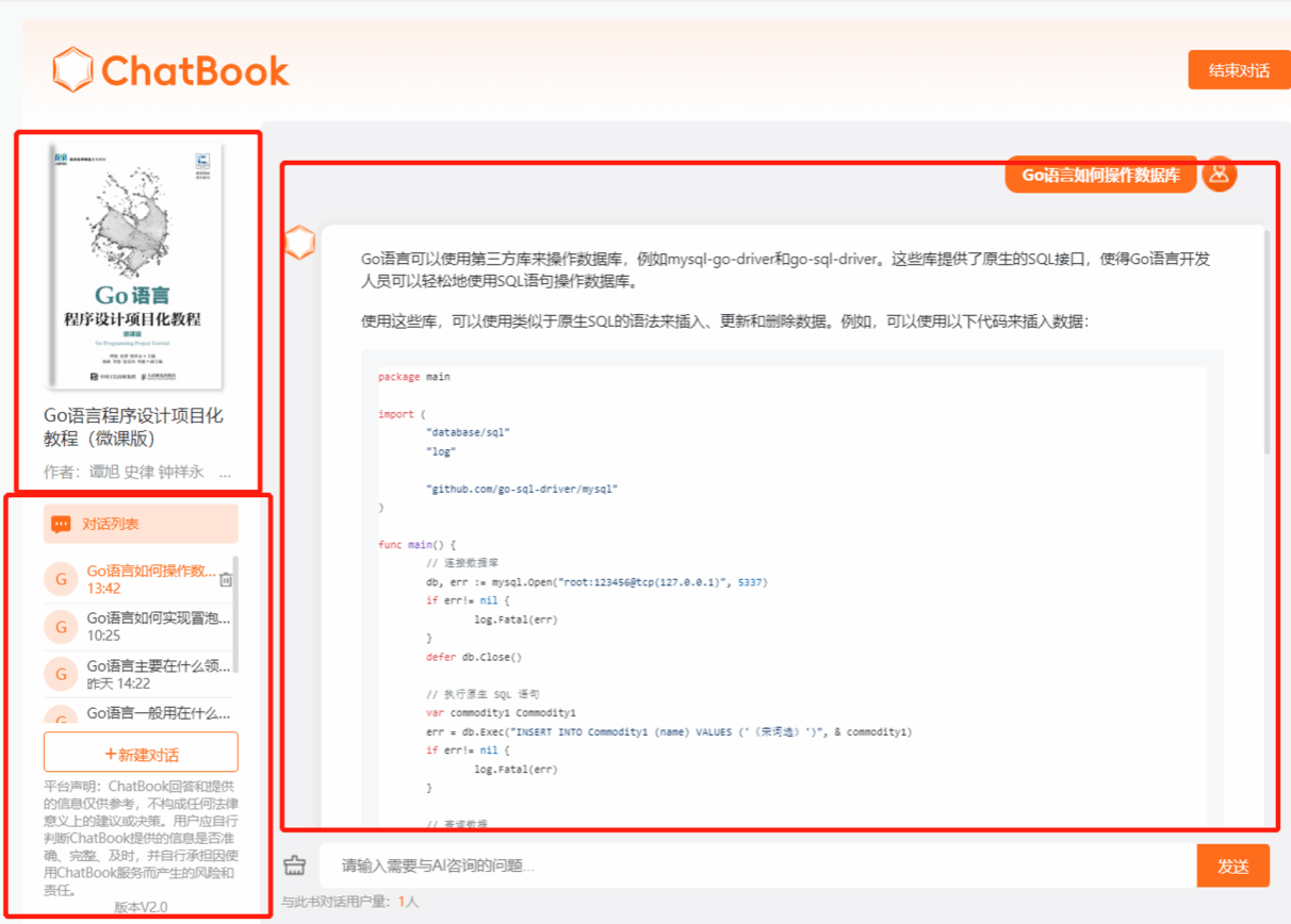 读者可以针对单本书籍提问,机器人会根据书籍本身内容给出具体的恢复,便利读者高效、准确提取书中内容。