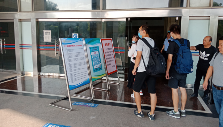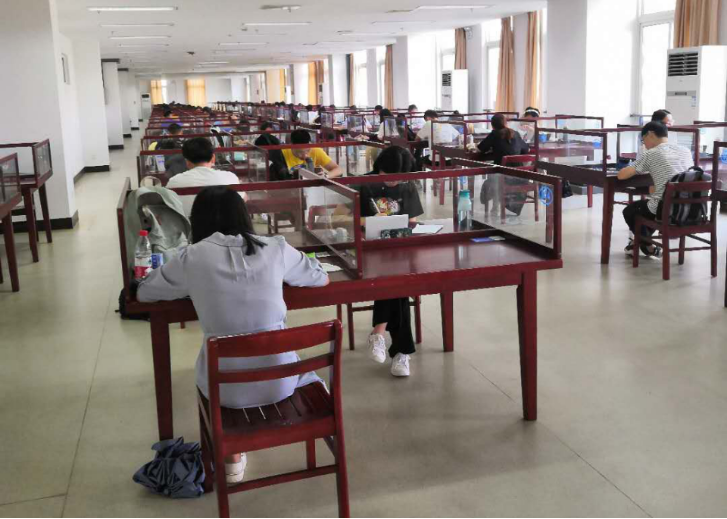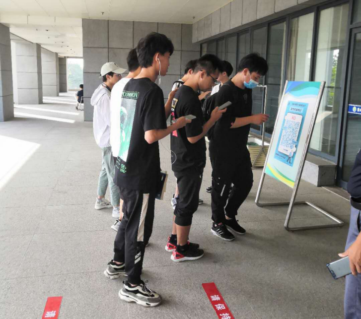 在南校区图书馆,二楼东门和一楼考研自修室东门,设有开放通知宣传牌、入口及出口二维码标识,值班人员有序引导读者扫码入馆。二楼考研自修室、各学科室、电子阅览室布置整齐,二楼大厅各种绿植错落有致,生机盎然。所有工作人员挂牌服务,巡视人员到位。开馆不到一刻钟,自修室已经满员,各学科室入座率超过50%,学习气氛焕然一新。