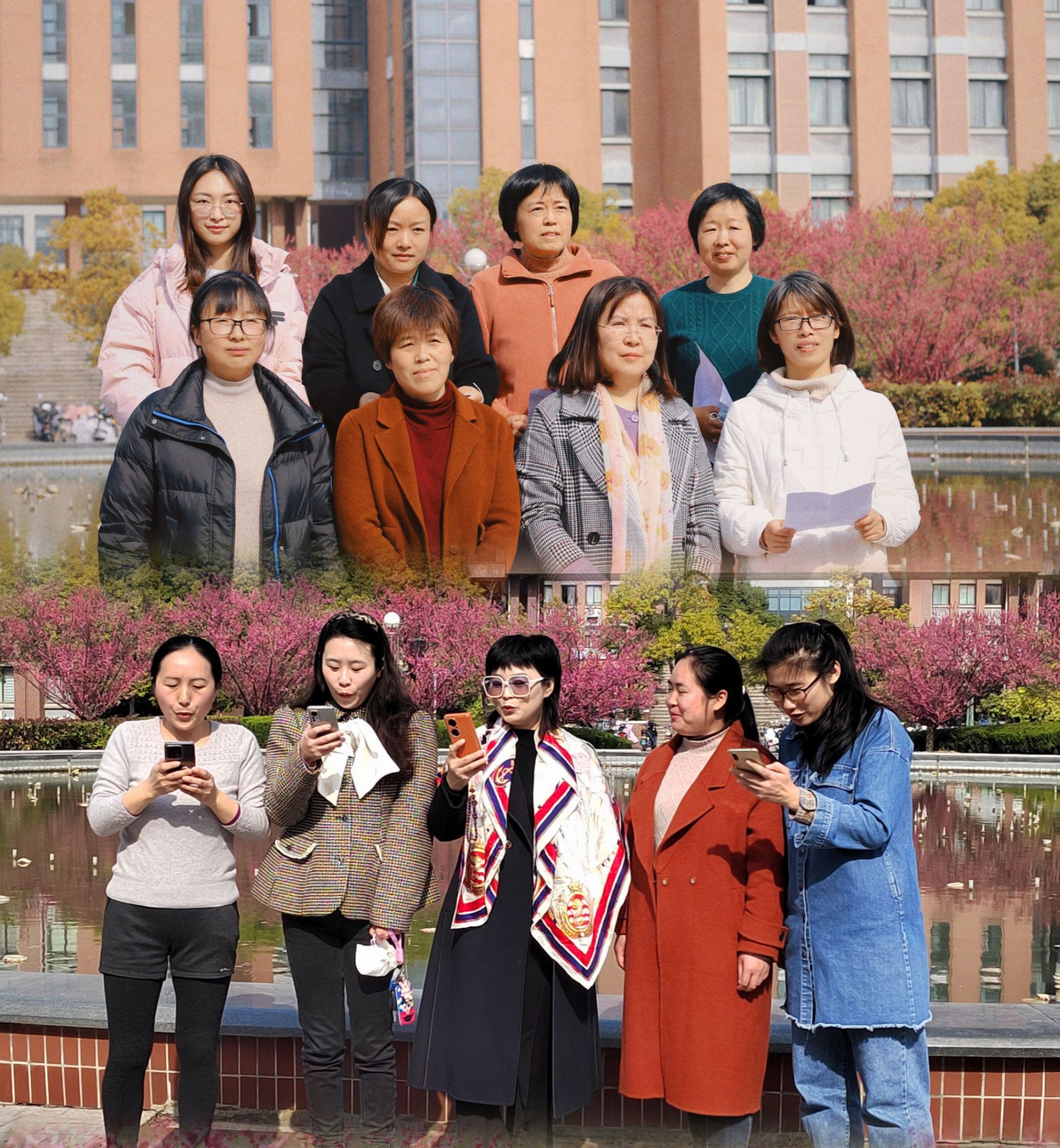 活动设有赏梅拍照、诗歌朗诵等环节。相机记录下了女职工们在校园赏梅的美好瞬间,随后,大家以部门为单位,在红梅广场朗诵了咏梅、赞梅的诗词。