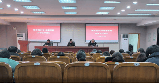2月25日下午,在南校区五楼报告厅,图书馆召开2024年春学期开学工作会议,副馆长李明主持,全体教职工参加。