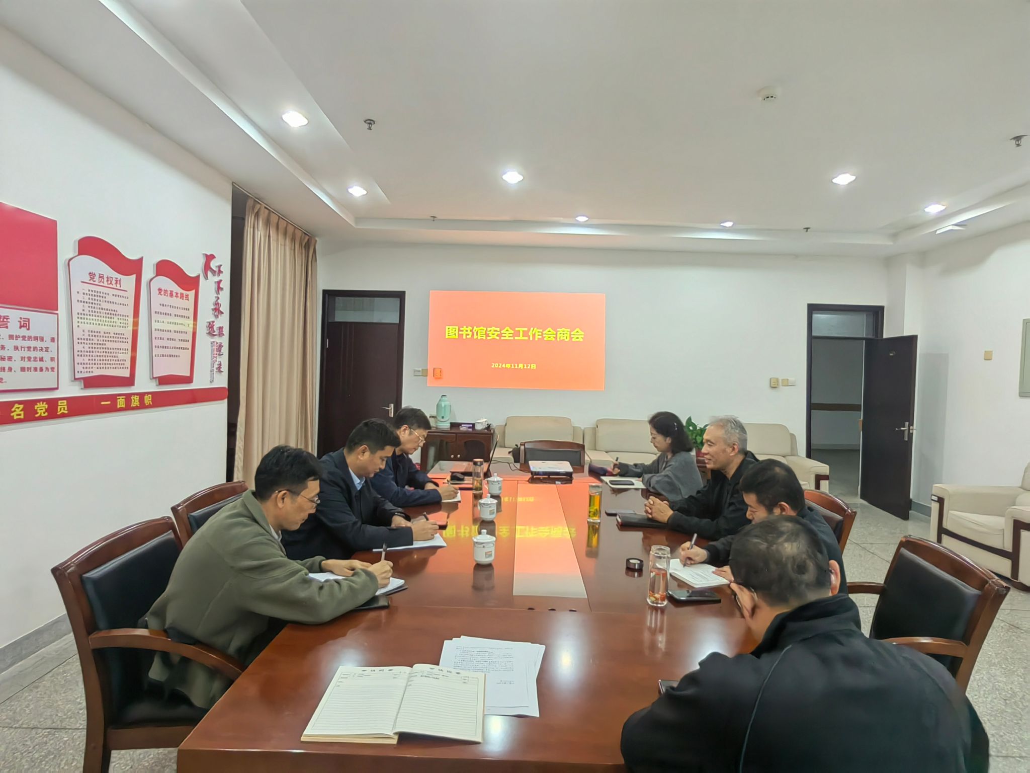 会上,馆长李明通报了图书馆开展安全教育的情况,并根据图书馆排查出的消防设施、墙体、玻璃窗框、照明设备等方面存在的安全隐患问题做了详细说明,提请安全保卫处、后勤基建处、后勤服务集团协助解决。