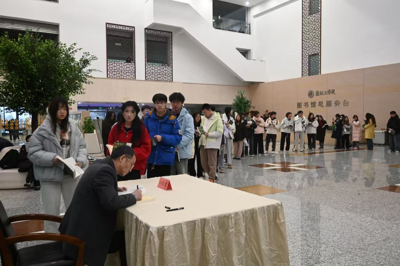 汪维宏以苏东坡读书经历、人生变迁、为官从政等为主线,聚焦他敬业精业勤业、亲民爱民惠民的品德与功绩,以详实的历史资料和生动精彩的讲解,生动阐述了苏东坡“穷亦兼济天下”的人生信条及“苟非我所有,虽一毫而莫取”的浩然正气,再现其亲民、爱民,良吏、廉吏的人物形象。交流环节中,同学们踊跃发言,汪维宏就同学们所关心的读书学习、人格塑造、人生选择、为人处世等问题进行了一一解答,谆谆教导同学们不要满足于当下现状,要不断充实自己,多做对社会有益的事,在时代的洪流中主动展示自我。活动后,汪维宏为每一位参加活动的同学签名赠书,并与同学们合影留念。此次读书沙龙活动持续两个多小时,同学们纷纷表示收获颇丰,不虚此行。