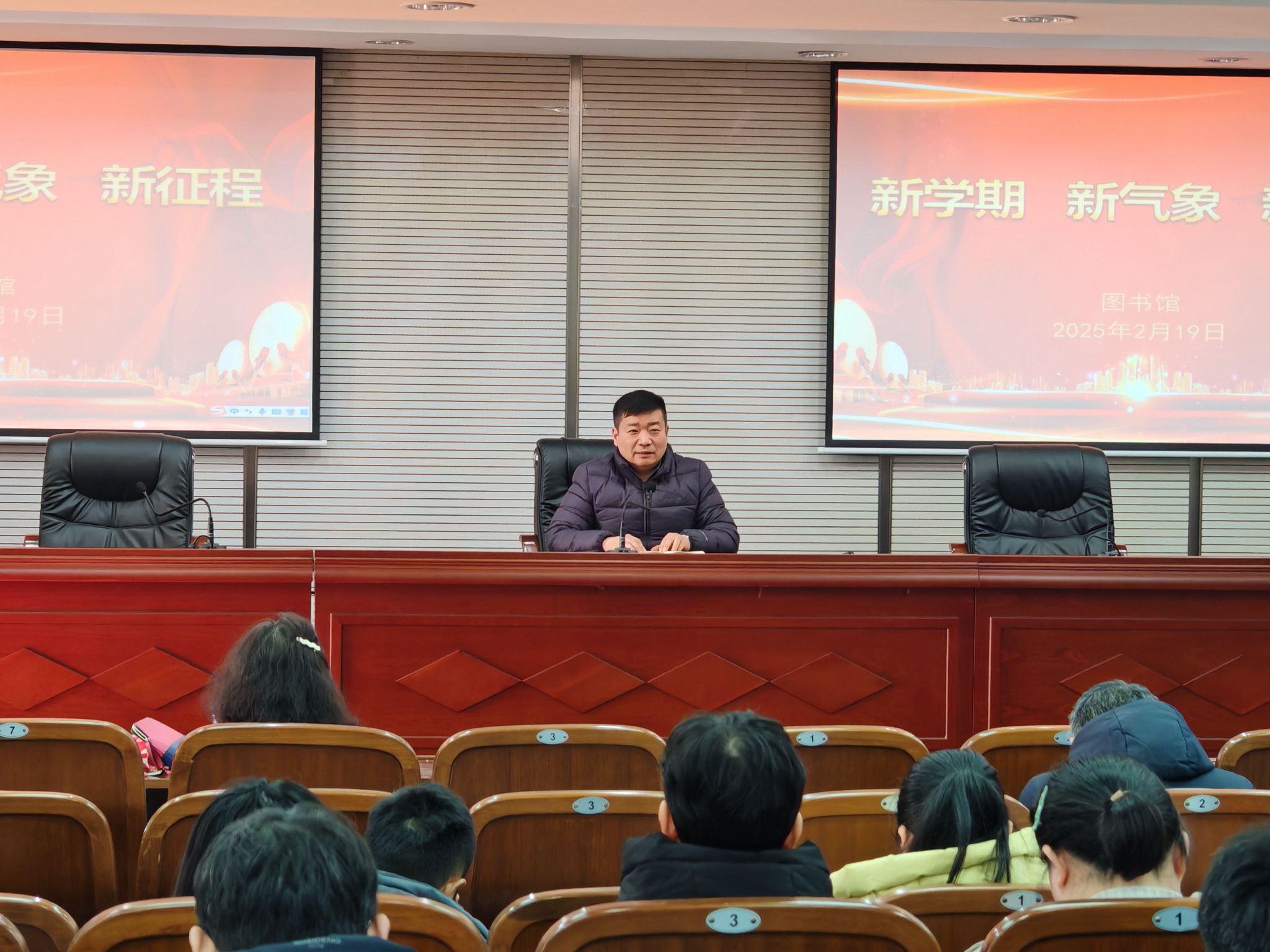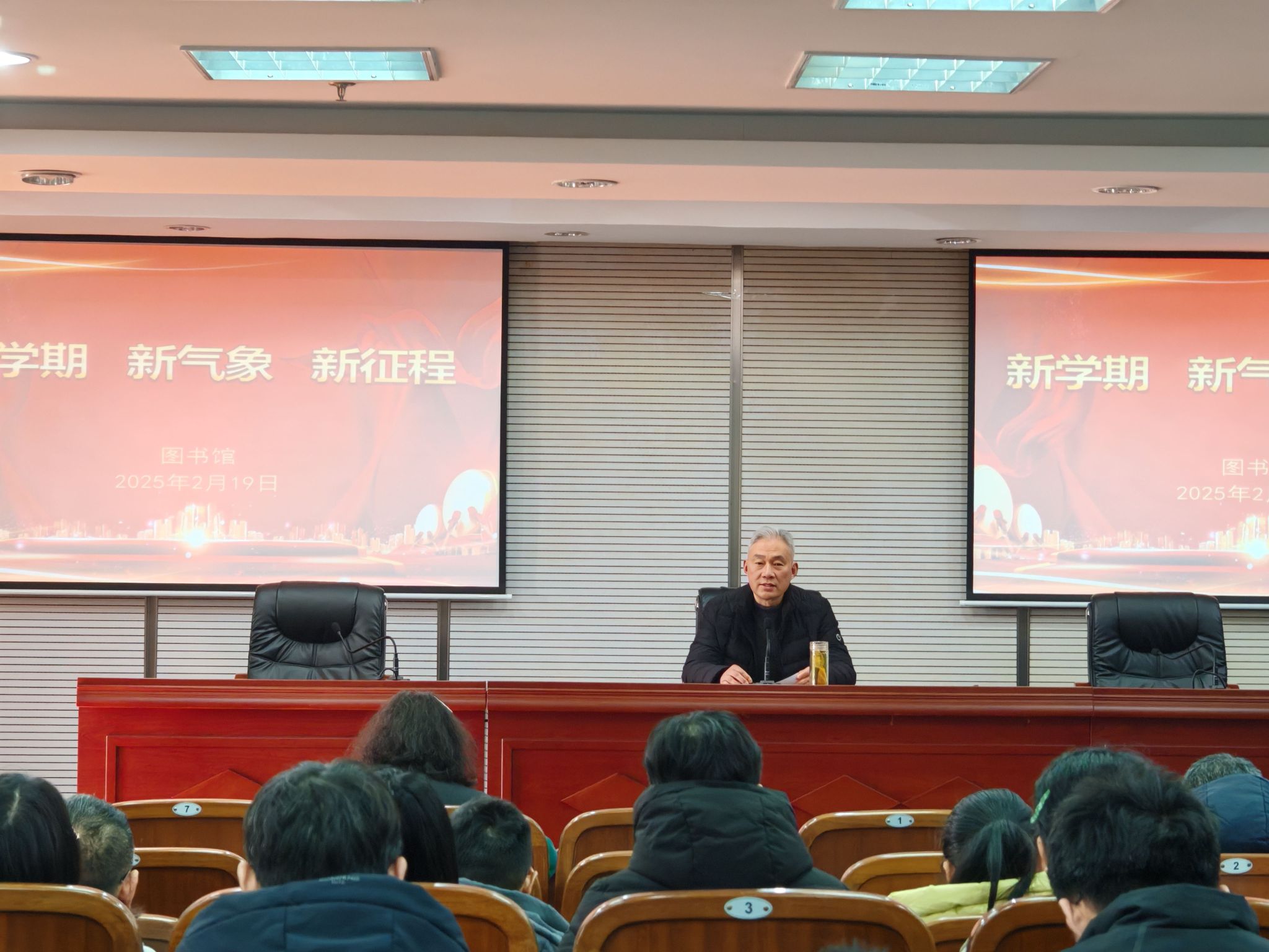 2月19日下午,在希望大道校区图书馆五楼报告厅,图书馆以“新学期、新气象、新征程”为主题,召开2025年春学期开学工作会议,党总支书记花爱军主持,全体教职工参加。