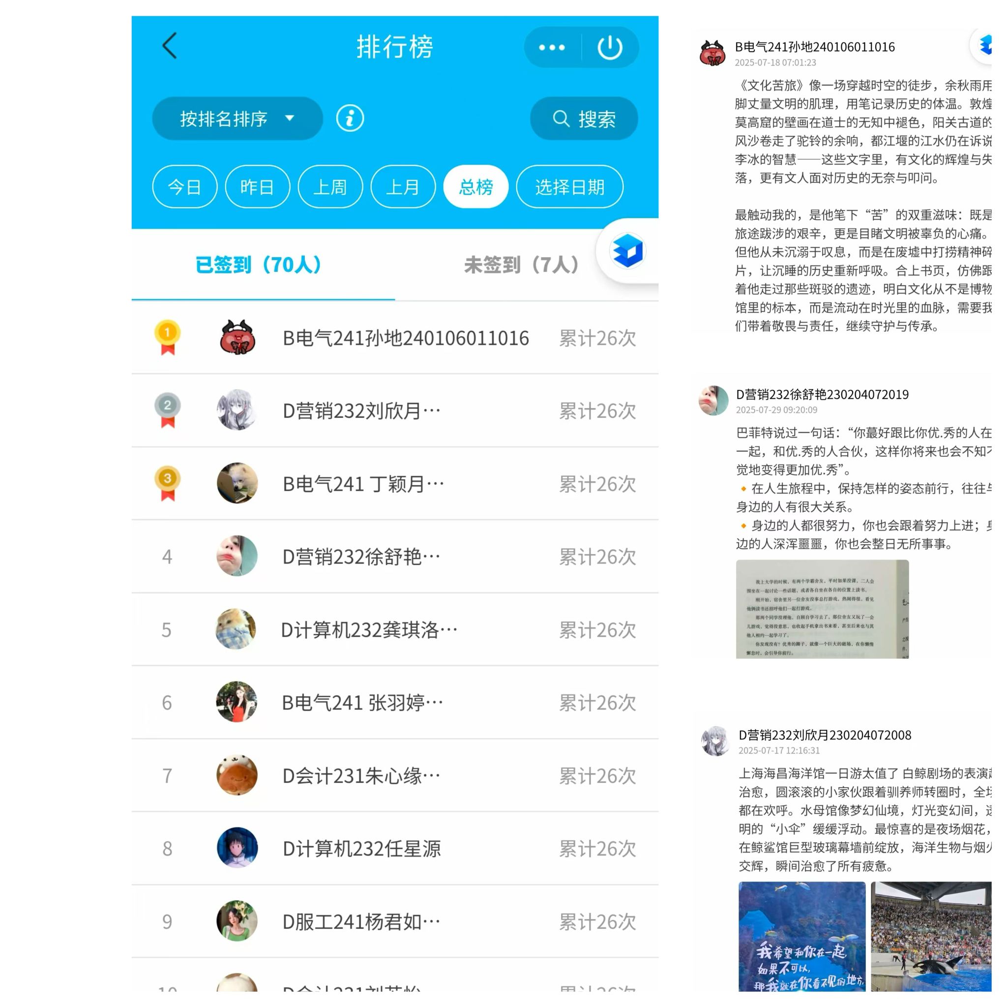 本次活动形式丰富多样,涵盖了阅读打卡、观影笔记、生活记录、成长日志等多个维度。参与者们借助文字的细腻、图片的生动、视频的鲜活,通过QQ等线上平台分享自己的感悟与体验。活动采用积分与排名机制,充分激发了同学们的参与积极性与竞争意识,大家在交流与互动中共同进步,形成了浓厚的阅读氛围。