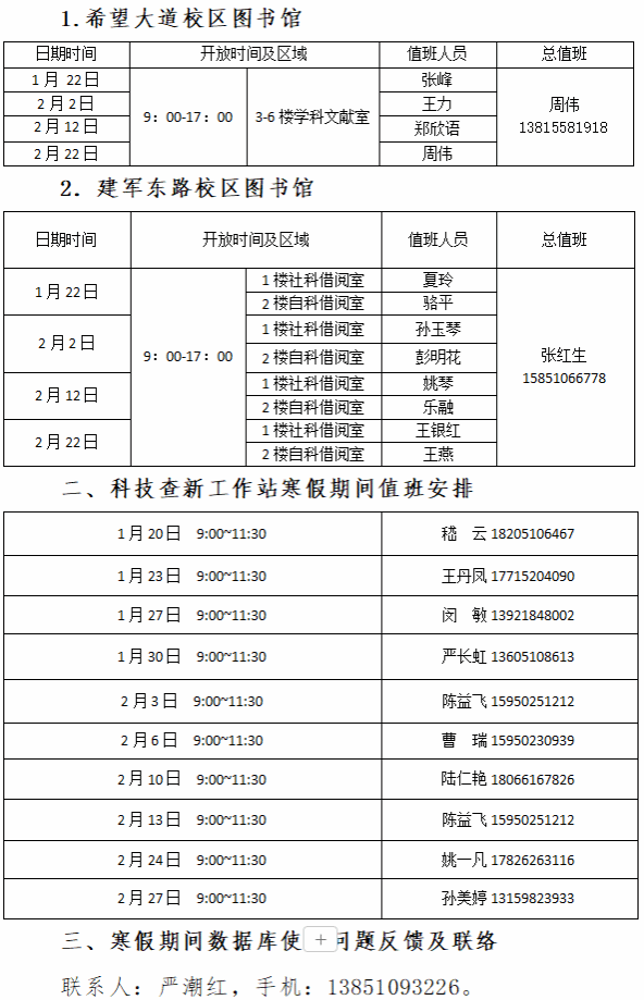 根据校办《关于2026年元旦及寒假放假安排的通知》精神,图书馆定于1月16日(星期五)17:30闭馆。为了确保读者在寒假期间图书资料借阅、数据库使用及科技查新等工作的正常开展,现将图书馆2026年寒假期间开放安排有关事项通知如下: