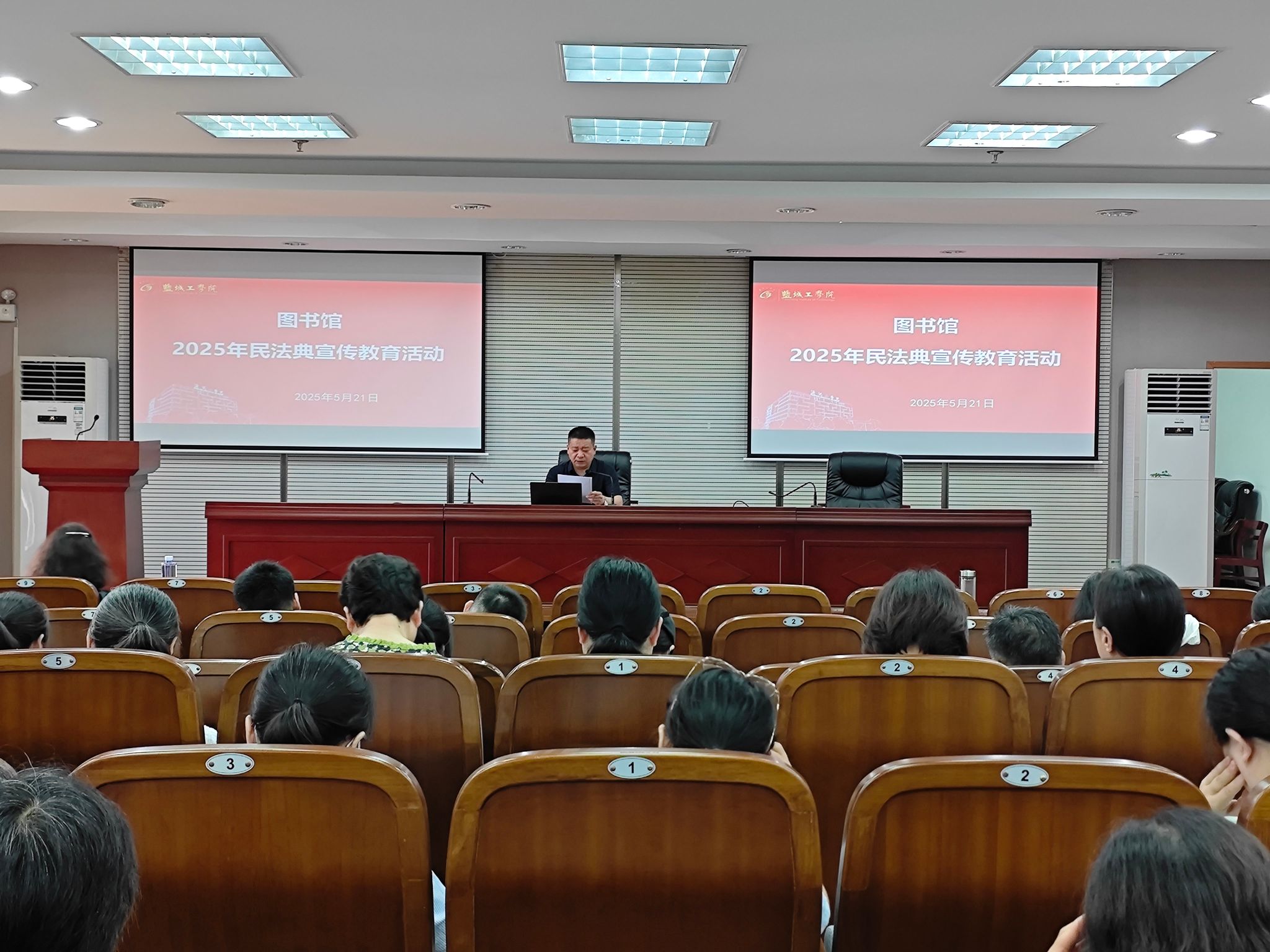 为深入学习宣传贯彻习近平法治思想,认真贯彻落实习近平总书记在民营企业座谈会上的重要讲话精神,5月21日下午,图书馆在南校区五楼报告厅,组织开展“民法典宣传月”学习教育活动,馆长李明主持,全体教职工参加。