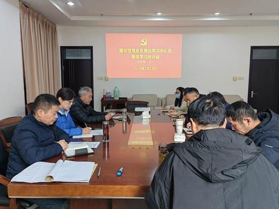 1月13日上午,在希望大道校区图书馆D805会议室,图书馆党总支理论学习中心组开展秋学期第五次集体学习研讨,党总支书记花爱军主持,理论学习中心组全体成员参加。