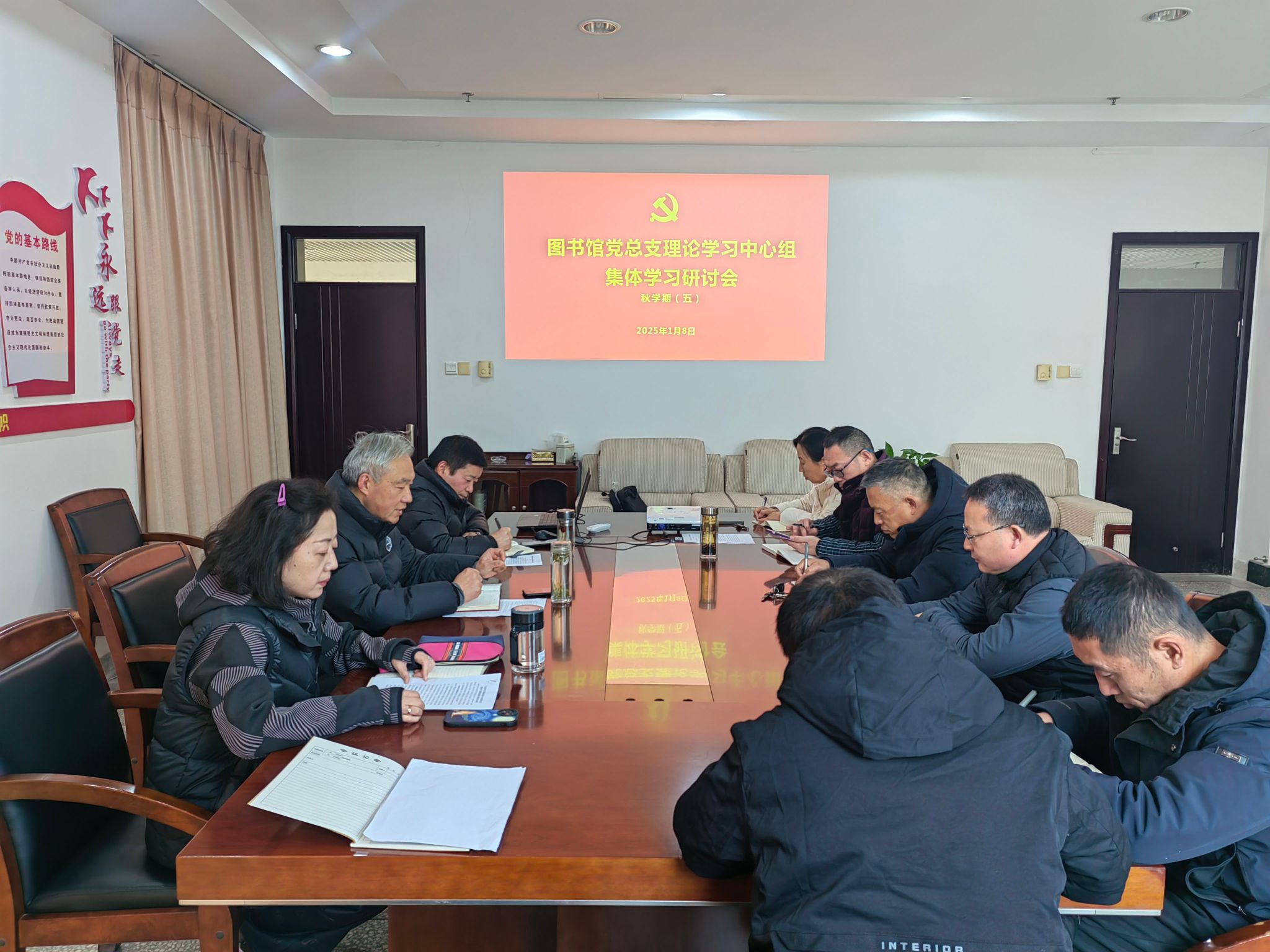 1月8日下午,图书馆党总支理论学习中心组在图书馆D805会议室开展秋学期第五次集中学习研讨。党总支书记花爱军主持会议,理论学习中心组全体成员参加。
