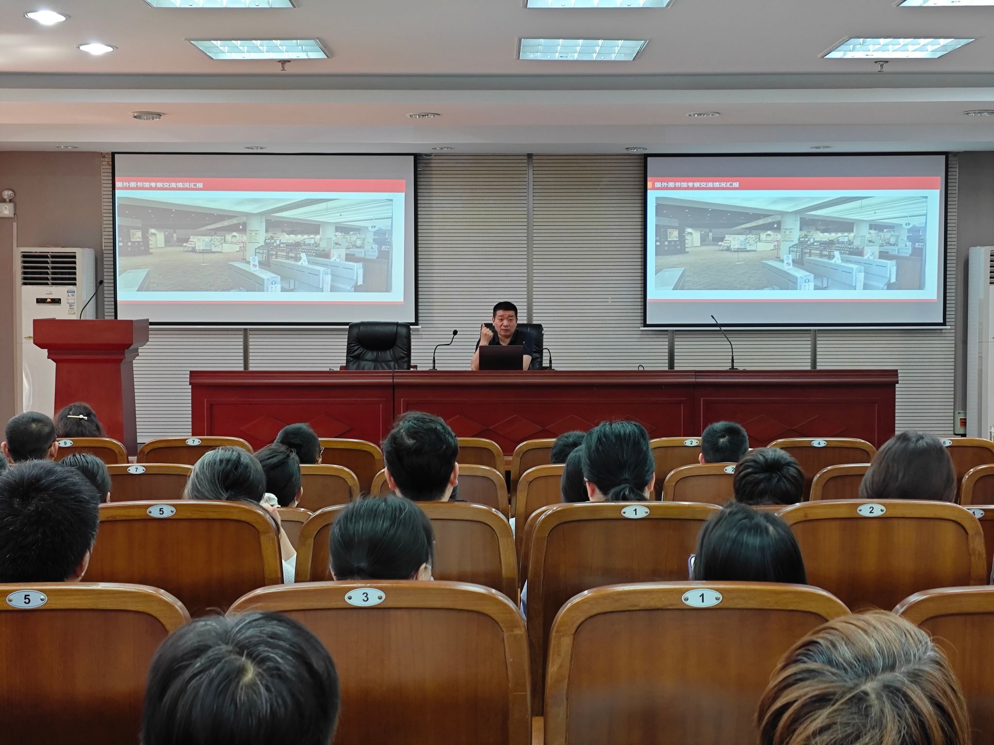 馆长李明与全体教职工分享了其在日本、韩国部分高校图书馆考察交流的心得体会。他主要围绕开放管理、功能布局、环境布置等三方面内容展开,并结合我校图书馆的实际情况,就图书馆的功能定位、读者管理、重点工作、未来规划等与教职工进行了深度交流。此次分享为图书馆进一步优化服务模式、提升管理效能提供了借鉴。